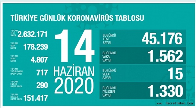 14 Haziran koronavirüs tablosu, vaka, can kaybı sayısı ve son durum