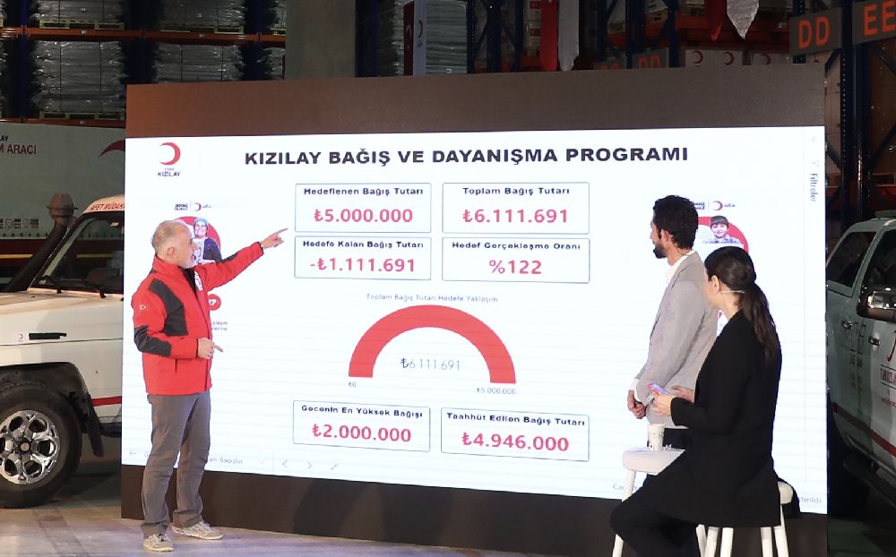 Kızılay, “Bağış ve Dayanışma Programı” ismiyle 7 saat süren bir canlı yayın programı düzenledi. Kızılay’ın sosyal medya hesaplarından canlı yayınlanan programda vatandaşlar, ünlüler, siyasetçiler, işadamları, kanaat önderleri yayına katılarak Kızılay’a olan desteklerini yaptıkları bağışlar ve açıklamalarıyla tescillediler. Programda 7 saat içinde 15 milyon 600 bin TL bağış toplandı