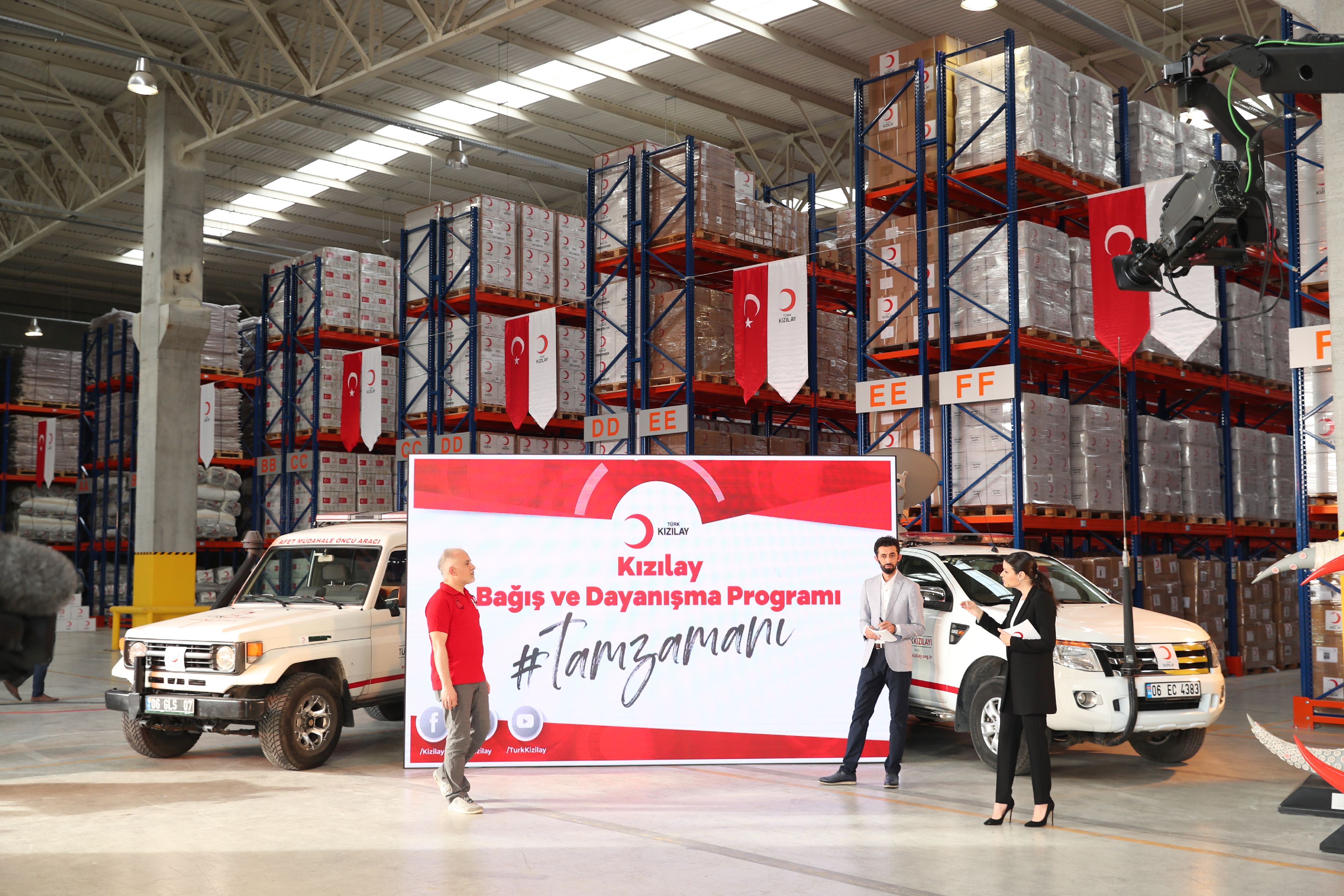 Koronavirüsle mücadele süreci ve Ramazan ayı faaliyetleri kapsamında insani yardım çalışmalarını yoğunlaştıran Kızılay, daha fazla insana ulaşabilmek için “Bağış ve Dayanışma Programı” etkinliği düzenledi. 7 saat süren canlı yayında ünlüler, siyasetçiler, sanatçılar, sporcular, işadamları, yabancı konuklar, valiler de konuk olarak Kızılay’a yaptıkları bağışlar ve açıklamalarıyla büyük destek verdiler. Genel Başkan Dr. Kerem Kınık’ın ev sahipliğindeki “Bağış ve Dayanışma Programı” Kızılay’ın İstanbul’da bulunan Afet Operasyon Merkezi’ndeki lojistik depolarında gerçekleştirildi.