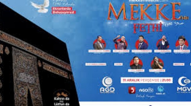 Anadolu Gençlik Derneği’nin (AGD), her yıl Türkiye’nin 81 ili ve yüzlerce bölgede farklı noktalarda tertiplediği, Mekke’nin Fethi programı bu yıl Kovid-19 pandemisi nedeniyle online gerçekleştirilecek. Mekke’nin Fethi’nin 1390’ıncı yıllında düzenlenecek program, 31 Aralık Perşembe akşamı saat 21.00’da başlayacak. Program TV5, Kanal 42, AGD TV ekranlarından ve sosyal medya hesaplarından canlı olarak yayınlanacak.