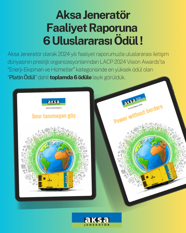 Aksa Jeneratör, 2024 yılı faaliyet raporuyla uluslararası iletişim dünyasında önemli bir başarıya imza attı. İletişim alanının en prestijli organizasyonlarından LACP (League of American Communications Professionals) 2024 Vision Awards’ta “Enerji – Ekipman ve Hizmetler” kategorisinde Platin Ödül dahil olmak üzere toplam 6 ödül kazandı. “Sınır Tanımayan Güç / Power Without Borders” temasıyla hazırlanan Aksa Jeneratör 2024 Faaliyet Raporu; yaratıcılığı, içerik kalitesi, tasarım yaklaşımı ve stratejik anlatımıyla değerlendirme jürisinden tam not aldı.Her yıl dünya çapında yüzlerce kurumun katıldığı LACP Vision Awards, faaliyet ve sürdürülebilirlik raporlamasında en iyi uygulamaları ödüllendiriyor. Aksa Jeneratör, aldığı 6 ödülle yalnızca sektöründe değil, tüm dünyada kurumsal iletişim ve raporlama standartlarının da öncülerinden biri olduğunu gösterdi.