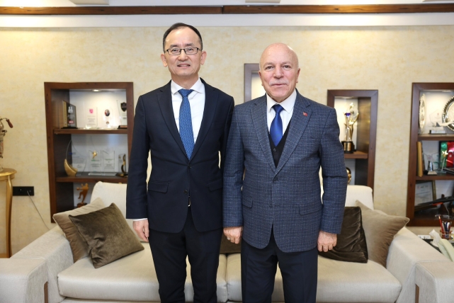 Erzurum Büyükşehir Belediye Başkanı Mehmet Sekmen, Çin Halk Cumhuriyeti Ankara Büyükelçisi Jiang Xuebin ve beraberindeki heyeti Büyükşehir Belediyesi’nde ağırladı. Samimi bir atmosferde gerçekleşen ziyaret, Türkiye ile Çin arasındaki köklü dostluk ilişkileri ile Erzurum–Harbin kardeş şehir bağlarının daha da güçlendirilmesi açısından önemli bir adım olarak değerlendirildi. Ziyarette şehir diplomasisi, kültürel etkileşim, ekonomik iş birliği ve karşılıklı tecrübe paylaşımı konuları ele alındı. Başkan Sekmen, Erzurum’un tarihi, kültürel ve ekonomik potansiyeline dikkat çekerek, kentin uluslararası alanda daha güçlü bir konuma taşınması için yürütülen çalışmaları konuk heyetle paylaştı.