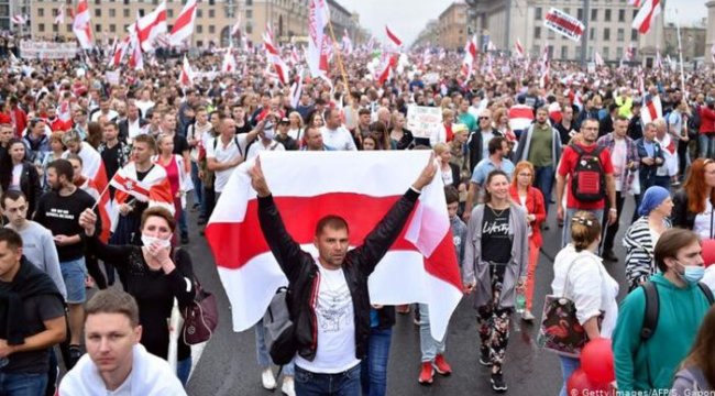 Rusya ise Lukaşenko'ya destek çıkıyor.Belarus'ta, 9 Ağustos'ta yapılan devlet başkanlığı seçimlerine hile karıştırıldığı gerekçesiyle başlayan protestolar pazar günü de devam etti. Başkent Minsk'te bulunan Bağımsızlık Meydanı'nda bir araya gelen on binlerce kişi, bir kez daha Devlet Başkanı Aleksandr Lukaşenko'nun istifasını ve seçimlerin yenilenmesini talep etti. Güvenlik güçlerinin metro istasyonlarını ulaşıma kapatması nedeniyle eylemciler miting alanına yürüyerek ulaştı. Protestocular "Özgürlük", "Unutmayacağız, Affetmeyeceğiz" ve Lukaşenko'ya hitaben "Defol" sloganları attı. Muhaliflere yakın medya kuruluşlarının bildirdiğine göre, eyleme 100 binden fazla kişi katıldı. Eylem öncesinde açıklama yapan yerel yetkililer halkı yasa dışı gösterilere katılmamaları konusunda uyarmış, Belarus Savunma Bakanlığı ise meydanda olay çıkması durumunda polisin değil ordunun müdahalede bulunacağı yönünde açıklama yapmıştı. Belarus'ta 26 yıldır iktidarda olan Aleksandr Lukaşenko'nun, 9 Ağustos'ta düzenlenen devlet başkanlığı seçimlerini yaklaşık yüzde 80 oy oranıyla ile yeniden kazandığını duyurması ve kendini seçimlerin galibi ilan etmesi üzerine ülkede protestolar başlamıştı.
