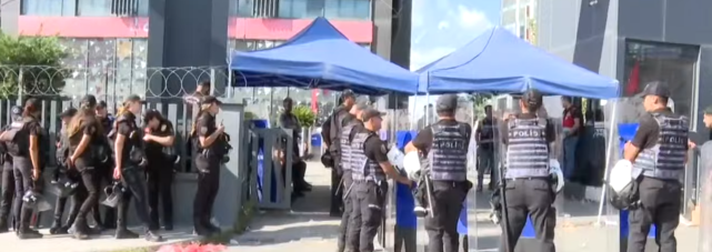 Sarıyer’deki il binası önünde dün gece saatlerinden itibaren polis ekipleri güvenlik önlemlerini artırdı. Çok sayıda CHP’li geceyi parti binasında geçirirken, sabah saatlerinde bina çevresinde gergin anlar yaşandı. Tekin’in açıklama yaptığı sırada kendisine su şişesi fırlatıldı.