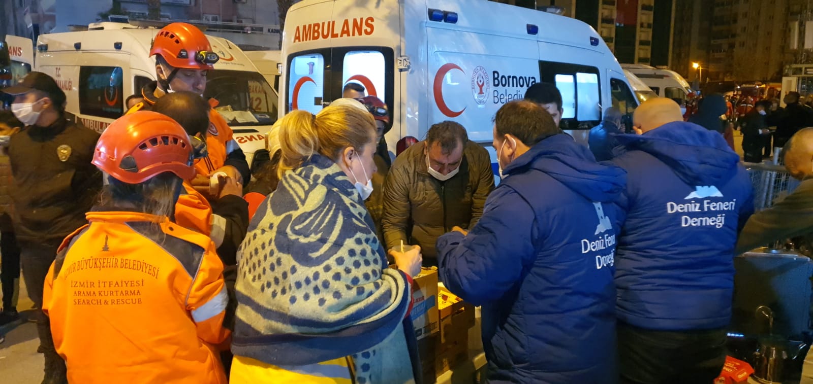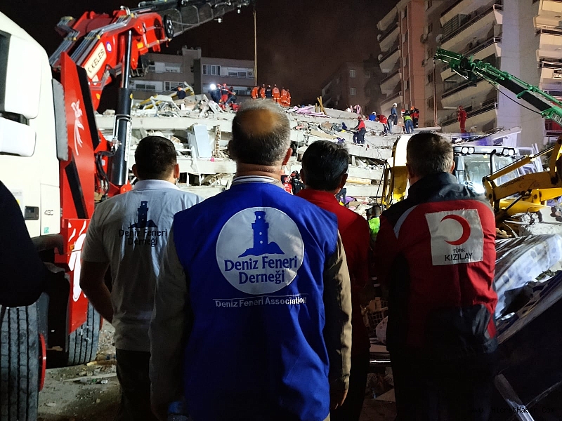 Açıklamada görüşlerine yer verilen Deniz Feneri Derneği Genel Başkanı Mehmet Cengiz, "İzmir’de bulunan Ege Bölge Temsilciliği’mizin lojistik depolarından ilk etapta battaniye, kuru gıda, çocuk kışlık montları, su, kek, hijyen malzemeleri depremzedelere dağıtmak için depremin vurduğu ilçelere doğru yola çıkardık. Ayrıca Sancaktepe Belediyesi’nden temin edilen mobil ikram aracıyla da sıcak çorba dağıtılmaya başlandı." ifadelerini kullandı.