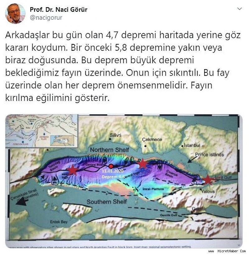 Prof. Dr. Naci Görür, sosyal medya hesabından yaptığı paylaşımda, depremin önemsenmesi gerektiğini kaydetti. Görür şu ifadeleri kullandı:
