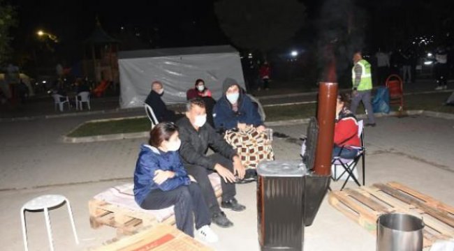Seferihisar açıklarında meydana gelen 6.6 büyüklüğündeki depremde evleri zarar gören ve çadırda kalan depremzedeler, geceyi çadırların önünde, sobada ateş yakarak geçiriyor.  Depremzede Yakup Türk, "Çocuklarımız depremden etkilendiği için evimize giremiyoruz. Bu binadakilerin hepsi dışarıda, çadırda kalıyoruz. Allah kimseye bir daha böyle bir acı yaşatmasın" dedi. Depremde evi hasar gören ve geceyi dışarıda geçiren Recep Bekçe ise "Depremde evimiz hasar gördü. Torunlarım çok korktu, şu an çadırda kalıyoruz" diye konuştu.