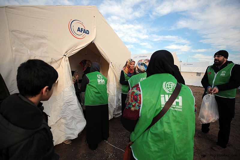Arama kurtarma faaliyetlerinde nöbeti diğer ekip arkadaşlarına devreden İHH Arama Kurtarma teknisyenleri, taziye evlerini ziyaret ederek depremde vefat eden ailelerin acısını paylaştı. İHH Kadın Kolları ise çadırları ziyaret ederek psikososyal destek amaçlı ziyaretler gerçekleştirdi. Kadın Kolları ayrıca çadırlardaki ailelere battaniye, bebek bezi ve ekmek dağıtımları yaptı.