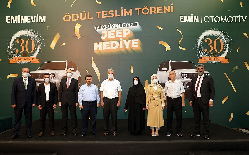 Türkiye’de faizsiz Elbirliği Sistemi ile hizmet veren Eminevim’in Jeep ödüllü büyük kampanyasının kazananları, özel bir törenle hediyelerine kavuştu. Covid-19 tedbirleri kapsamında sınırlı sayıda katılımcıyla düzenlenen etkinlikte, kampanyanın büyük ödülü olan bir adet Jeep Renegade başta olmak üzere Samsung TV, Playstation, ipad ve iphone gibi ödüller, Eminevim’i tavsiye ederek Haziran ayında noter huzurunda yapılan çekiliş sonucunda ödül almaya hak kazananlara teslim edildi. Talihlilere hediyelerinin Emin Grup Yönetim Kurulu Üyeleri tarafından verildiği törende, Çorum’dan kampanyaya katılan ve Jeep ödülünün kazananı olan 56 yaşındaki emekli öğretmen Erdoğan Dinç, büyük heyecanla beklediği Jeep’in anahtarını törende teslim aldı.