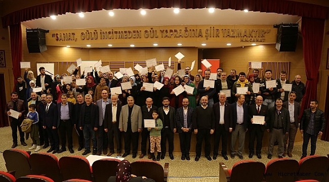 Eğitimini tamamlayanlar için Bağcılar Belediyesi Hasan Nail Canat Bilgi Evi ve Kültür Merkezi’nde tören düzenlendi. İlk ders günü kafalarında soru işareti yüzlerinde tedirginlik bulunan çiftlerin gözlerindeki mutluluk dikkat çekti. Eğitimci Serkan Ekmen’in sunumuyla İlçe Milli Eğitim Müdürü Mustafa Yılmaz, İlçe Müftüsü Celal Büyük ve Bağcılar Belediye Başkan Yardımcısı Mehmet Şirin, kursiyerlere sertifikalarını takdim etti. Mutluluk ve gurur tablosunun yaşandığı programın sonunda kursiyerler birbirlerini alkışlayarak büyük bir centilmenlik örneği de sergiledi.