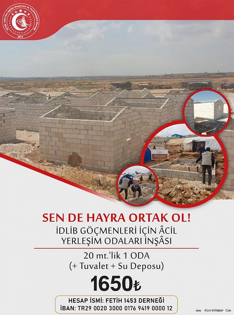 Er konuşmasını devamında ‘’Soğuk kış günlerinde bataklık ve çamur içerisinde zor günler geçiren ve İdlip bombardımanından kaçan kardeşlerimiz için çadır yerine 20 Metre karelik tuvaleti lavabosu ve su deposu olan kalıcı barınaklar inşaa ediyoruz..