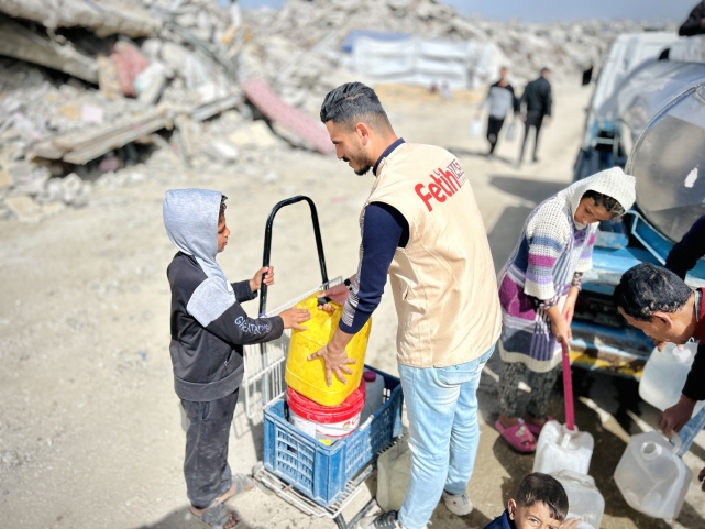 Ramazan’ın ilk gününde Gazze’de temiz içme suyu dağıtımı yapıldığını belirten Er, bölgedeki temel yaşam kaynaklarına erişimin her geçen gün daha da zorlaştığını ifade etti. Özellikle temiz suya ulaşımın büyük bir mücadeleye dönüştüğü Gazze’de, tankerlerle gerçekleştirilen dağıtımların aileler için hayati önem taşıdığı vurgulandı.