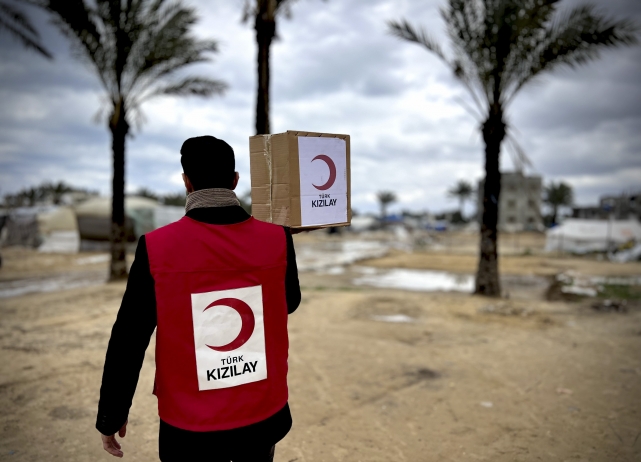 Türk Kızılay, “Bu Ramazan da Kalbimiz Bir Soframız Bir” sloganıyla başlattığı kampanya kapsamında başta Gazze olmak üzere delegasyonlarının bulunduğu toplam 18 ülkede ihtiyaç sahiplerini destekliyor. Gazze’deki insani krizin etkilerini hafifletmek için ilk günden beri bölgeye yönelik yardım çalışmalarını sürdüren Kızılay, Ramazan ayını yıkımın gölgesinde karşılayan Gazze halkını desteklemeye devam ediyor. Ramazan hazırlıkları kapsamında bölgede gıda kolisi dağıtımlarına başlayan Kızılay, 30 bin kişilik sıcak yemek dağıtımıyla Gazze halkına ilk iftar desteğini de sundu. Gazze’nin kuzeyinde Rimal ve Derilbelah bölgeleri ile güneyde Han Yunus ve Refah’ta dağınık yerleşimlerde iftarlık yemek dağıtımı yapan Kızılay, Ramazan boyunca Gazze’de 900 bin kişilik iftarlık dağıtacak.