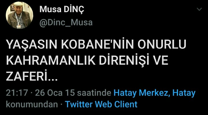 Skandal kitabın yazarı Musa Dinç isimli şahsın YPG'nin Aynel Arab bölgesinde Mehmetçik'e yaptığı saldırıları övdüğü mesajı ortaya çıktı. Dinç, "Yaşasın, Kobane'nin onurlu kahramanlık direnişi ve zaferi" şeklinde tweet attığı ortaya çıktı.