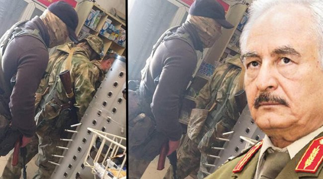 Hafter'in paralı askerleri market alışverişi yaparken görüntülendi. Askerlerin ellerinde uzun namlulu silahlarla dolaşırken gösterdikleri rahat tavırlar büyük tepki çekti.