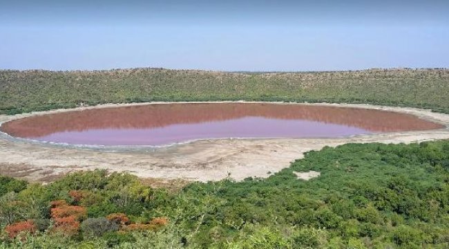 Hindistan’ın Maharashtra eyaletine bulunan ve yaklaşık 50 bin yıl önce bir göktaşının Dünya’ya çarpması sonucu oluşan Lonar Gölü’nün rengi pembeye döndü.