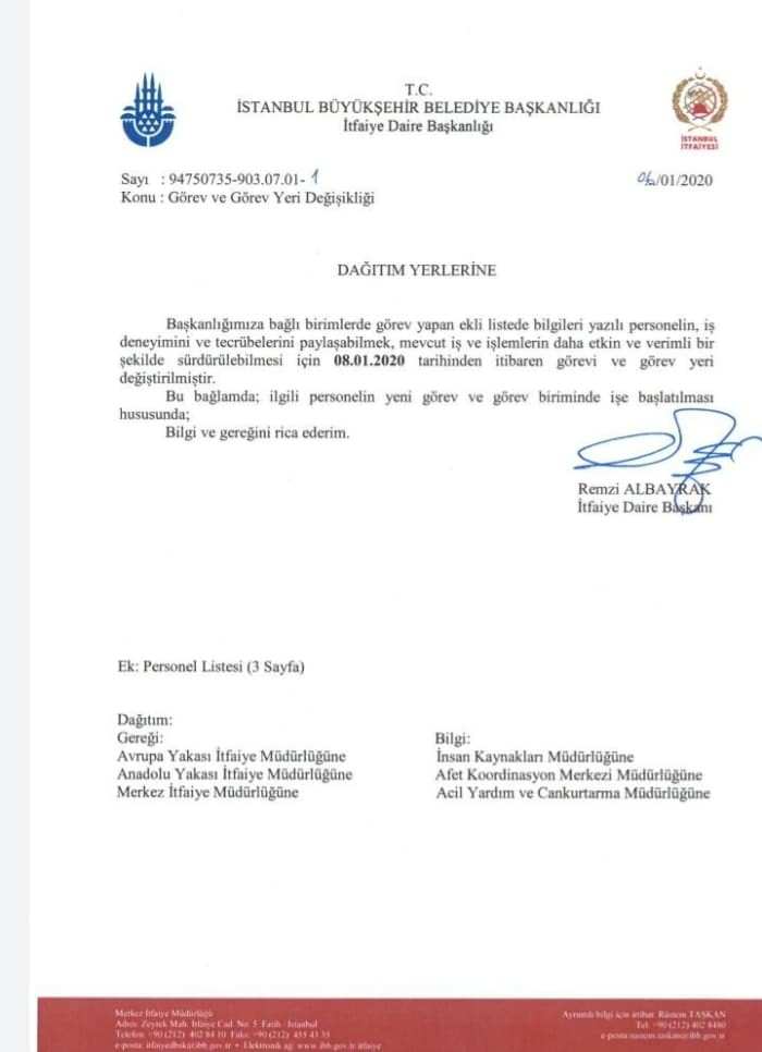 Sistemin nasıl devre dışı kaldığı, İtfaiye Daire Başkanı Remzi Albayrak'ın imzası ile birimlere gönderilen talimat yazılarına da yansıdı.