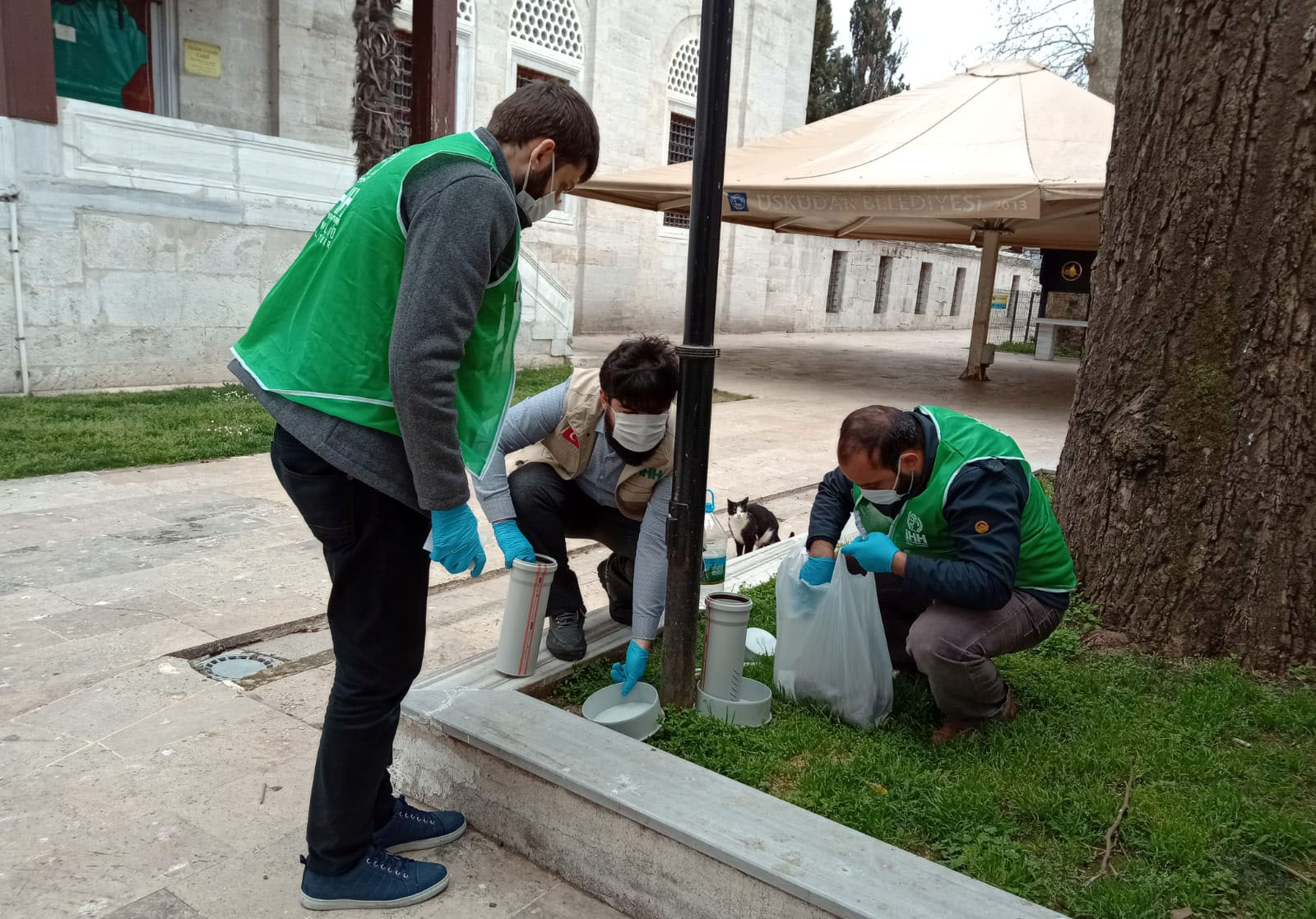 Gençler, sokak hayvanlarını unutmadı Genç İHH ekipleri, dışarıda su ve yiyecek bulmada zorlanan sokak hayvanları için Türkiye’nin çeşitli bölgelerinde birçok noktaya su ve mama kapları bıraktı. Suriyeli kadınlar, Türkiye’ye vefa için maske üretti