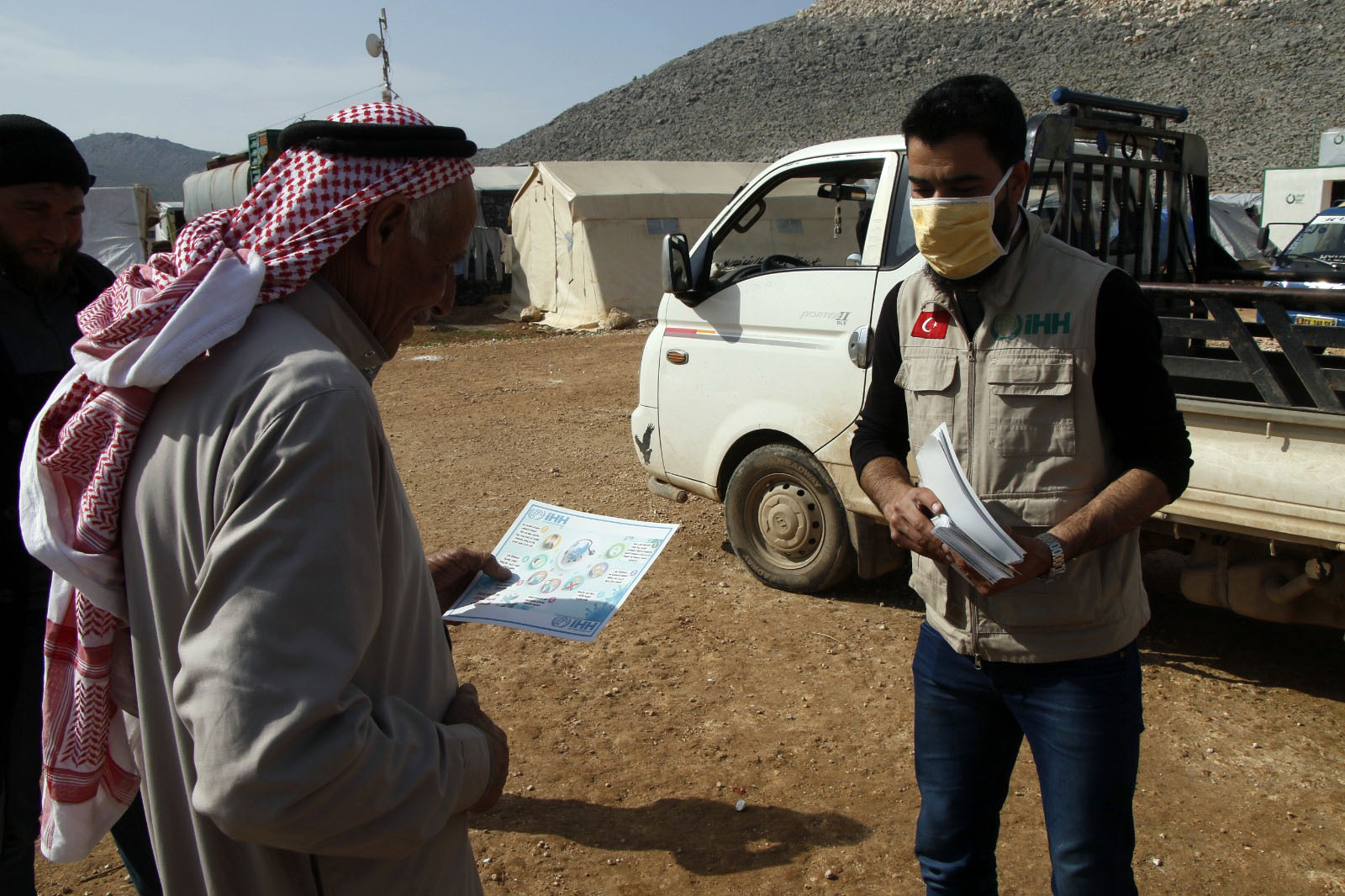 İHH ekipleri, Suriye’deki çalışmalarını da sürdürüyor. Ailelere hijyen paketlerinin yanı sıra sağlık taramaları da gerçekleştiriyor. Vakıf, kamplarda koronavirüse karşı bilinçlendirme amacıyla broşür dağıtımında bulunuyor.