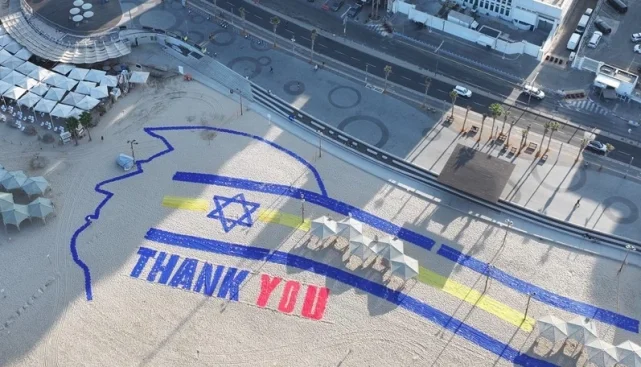Kutlamaların en dikkat çeken unsuru ise üç futbol sahası büyüklüğündeki dev enstalasyon oldu. Gökyüzünden dahi görülebilecek şekilde tasarlanan bu görsel düzenleme, Gazze’den dönen İsraillilerin helikopterlerle ülkeye dönüşü sırasında Trump’a teşekkür mesajlarını görmeleri amacıyla hazırlandı.