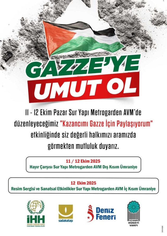 Sur Yapı Metrogarden AVM Ümraniye: 11.10.2025-12.10.2025 tarihleri 2 gün Hayır Çarşısı, Resim Sergisi ve Sanatsal Etkinlikler