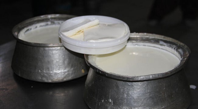 Afyonkarahisar’ın merkeze bağlı Küçükçobanlı köyünde bulunan 2 bin mandadan sağılan sütler meşhur Afyon kaymağına dönüşürken, kaymağı alınan manda sütünün arta kalan kısımlarından ise lezzetinin yanı sıra bir o kadarda şifa kaynağı olan manda yoğurdu elde ediliyor. Kaymak altı sütünden doğal süzme yoğurt yapılıyor Manda ve inek sütünden yapılan kaymaktan arta kalan sütlerle süzme yoğurt yaptıklarını belirten kaymak ve yoğurt üreticisi Mehmet Bedri Eşmen, “Kaymak altı olan sütleri yine kendimiz değerlendiriyoruz ve süzme yoğurt yapıyoruz. Aldığımız kaymağın altındaki sütü tankta ısıtıyoruz, çalma ısısı dediğimiz kıvama gelince yine tankın içinde mayalıyoruz. Mayalanan sütler plastik kovalara konularak yoğurt tutma bölümüne alıyoruz. Orada yaklaşık 3-4 saatte yoğurt tutuyor. Yoğurt tuttuktan sonra bu defa soğuk hava deposuna alıyoruz. O kısımda da yaklaşık 5-6 saat duruyor sonrasında süzme bölümüne döküyoruz ve yoğurdu elde ediyoruz” diye konuştu. “Doğal yoğurt ekşimsi olur” Doğal yoğurdun ekşimsi bir tadının olduğunu ifade eden Eşmen, “Lezzeti diğer yoğurtlara göre güzel, tam yağlı yoğurda yakın bir yağ oranı var. Yoğurt zaten biraz ekşimsi olur, doğal olduğundan dolayı da lezzeti de iyidir. Manda ve inek sütü karışık olduğu için lezzeti biraz farklı oluyor. Biz büyük işletmelere veriyoruz, kilogram fiyatını ise 10-12 TL civarında satıyoruz” dedi.
