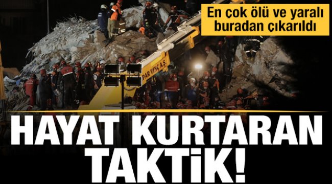 Arama-kurtarmada ilk önce depremin saatine bakılıyor. Enkazdaki insanların o an hangi odalarda olabileceği belirleniyor. Gündüz yaşanan İzmir depremine insanların mutfak ve oturma odalarında yakalandığı varsayıldı. En çok yaralı ve ceset de buralardan çıkarıldı.