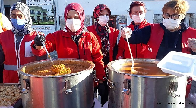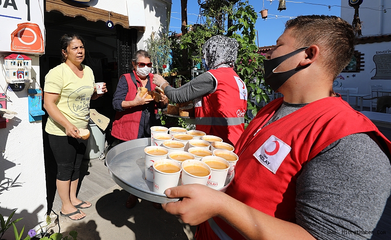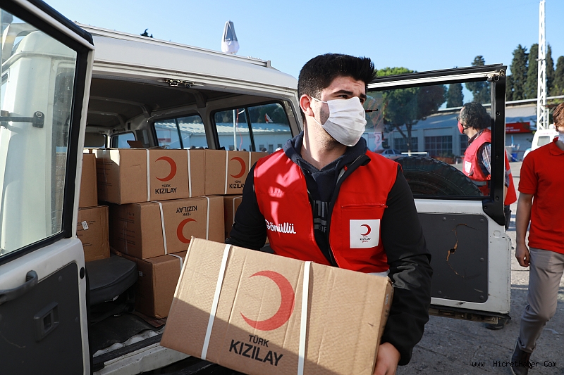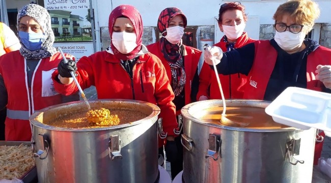 Yardım çalışmalarını 85 personel, 45 şube görevlisi ve 193 gönüllü ile yürüten Kızılay, 122 bin 518 kişilik beslenme kapasitesi ile evleri hasar gördüğü veya yıkıldığı için geceyi dışarıda geçirmek durumunda kalan vatandaşlara 7/24 sıcak yemek desteği sağlıyor. Bölgede bulunan 5 ikram aracı, 5 mobil mutfak ile 8 öncü araç ve 20 çeşitli görevde kullanılan araçla depremzedelerin yanında yer alan Kızılay, depremin meydana geldiği ilk dakikadan itibaren toplam 50 bin 293 paketli gıda, 7 bin 198 sıcak içecek, 6 bin 216 soğuk içecek ve 28 bin 657 su dağıtımı gerçekleştirdi.