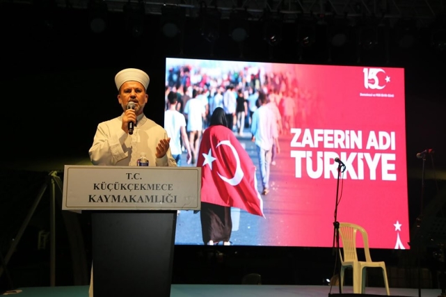 Programın manevi boyutunda ise Küçükçekmece Müftüsü Hasan Hüseyin Palabıyık’ın yaptığı dua ve okunan sala ile duygu yoğunluğu zirveye ulaştı. Müftülük İlahi Korosu’nun seslendirdiği ilahiler ve ezgiler, kalpleri derinden etkileyerek birlik ve beraberlik duygularını pekiştirdi.