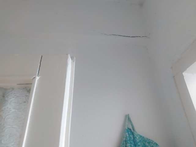 Binanın dış cephesinden iç kısımlarına kadar her detay, ciddi bir yapı riskini gözler önüne seriyor. Hasır betonla kapatılmaya çalışılmış döşeme detaylarında betonarme demirlerinin dışarıda olduğu net bir şekilde görülüyor. En dikkat çeken durumlardan biri ise binanın sanki zemine değil de havada asılı duruyormuş hissi vermesi. Mahalle sakinleri, özellikle çocukların ve yaşlıların bulunduğu bu sokakta olası bir çökme riskine karşı yetkililerin derhal harekete geçmesini istiyor.