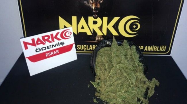 Olay, dün saat 19.00 sıralarında İnönü Mahallesi nde bulunan bir markette meydana geldi. Ödemiş Narkotik Grup Amiri S.B., market alışverişi yaptığı esnada, dükkan sahibine adres soran E.E. nin hareketlerinden şüphelenerek kendisinden kimlik istedi.Kimliğini alma bahanesiyle otomobiline yönelen E.E., aracın ön yolcu koltuğu üzerinden aldığı siyah bir poşetle hızla kaçmaya çalıştı. Şüpheli şahıs, 500 metre ileride polis amiri S.B. tarafından durdurularak etkisiz hale getirilirken, olay yerine polis ekipleri çağrıldı.Olay yerine gelen polis ekipleri tarafından aramada, poşet içerisinde 500 gram esrar maddesi ele geçirildi. E.E. isimli şüpheli, gözaltına alınırken, şahsın adli işlemlerinin sürdüğü öğrenildi. ()İlginizi ÇekebilirNarkotik polisi fırçayla asfalttan uyuşturucu süpürdü