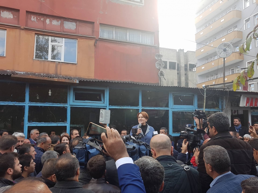 Hakkari’nin Şemdinli ilçesinde şehit olan 8 askerle ilgili de Akşener, “Bakın bugün 8 şehidimiz var. 8 ocağa ateş düştü. Cenab-ı Hak her birinin anasına babasına sabır versin. Milletimizin başı sağ olsun. Bütün bunların getirdiği sorun senin işsizliğin. Onun için bugün o kocaman problemleri çözmemiz mümkün değil. Ben bugün küçük küçük somut bir adımlar atıyorum. Yaptığım iş bugün sizin sesinizin duyulmasıdır. Ben bugün buraya fabrika kuramayacağım ama fabrika kurması gerekenlere burada olduğumu söylüyorum. Burada onların rakibi olduğumu söylüyorum. Ben burada yaşayacağımı söylüyorum. Ve diyorum ki hodri meydan. Hadi bakalım yüreği yeten gelsin Bitlis'e. Gelsin Muş'a ev alsın otursun. Ev kirası versin, elektrik su faturası ödesin. Kömür parası ödesin. Bunu yapmadan birbirimizi öğrenemeyiz. İyi parti size iyi gelecek” dedi.