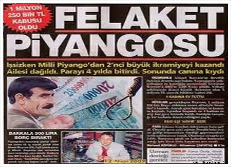 Aynı yolda başlayan ve biten aynı hayat hikayeleri ve aynı acı sonlar. Birbirlerini tanımayan fakat aynı kaderi paylaşan bu insanlar ‘keşke’ sözcüğünü milli piyangodan kazandıkları paradan sonra oldukça fazla söylediler. Hepsinde dilinde aynı cümle vardı: ‘Çok pişmanım!’