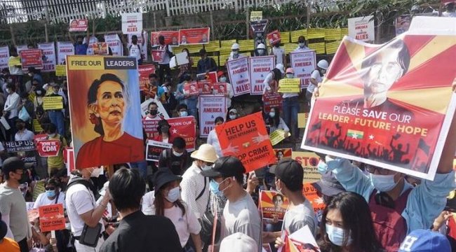 Myanmar'da askeri darbe ve seçilmiş hükümet üyelerinin gözaltına alınmasına karşı düzenlenen protestolar, askeri yönetimin internet erişimine yasak getirme kararına rağmen devam ediyor.