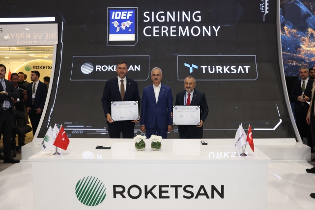 Roketsan ve TÜRKSAT, uzay çalışmalarında iş birliği yapacakTürkiye’yi uzaya taşıma görevini üstlenen Roketsan, bu konudaki iş birliklerini de genişletiyor. 1.500 kilogram ağırlığındaki uyduları 700 kilometre irtifadaki güneş eşzamanlı yörüngeye yerleştirmek üzere geliştirdiği ŞİMŞEK-2 Uydu Fırlatma Aracı’nın lansmanını da IDEF’25’te gerçekleştiren Roketsan, ayrıca, fuarda, TÜRKSAT ile “Uydu Fırlatma ve Uzay Sistemleri Alanında İş Birliği Protokolü” de imzaladı. T.C. Ulaştırma ve Altyapı Bakanı Abdulkadir Uraloğlu’nun da katıldığı törende, Roketsan Genel Müdürü Murat İkinci ve TÜRKSAT Genel Müdürü Ahmet Hamdi Atalay tarafında imzalanan iş birliği protokolü ile Türkiye’nin bu alandaki kabiliyetlerinin artırılması hedefleniyor. Roketsan ve ASFAT arasında TEBER iş birliğiÖte yandan IDEF’25’in üçüncü gününde Roketsan ve ASFAT arasında da “TEBER Projesi Kapsamında Tapa Alımı İş Birliği Protokolü” imzalandı. Roketsan’ın MK-81 ve MK-82 Genel Maksat Bombaları’nın vuruş kabiliyetinin artırılması amacıyla geliştirdiği TEBER Güdüm Kiti, Genel Maksat Bombaları’nı Ataletsel Ölçüm Birimi, Küresel Konumlama Sistemi ve aktif Lazer Arayıcı Başlığı kullanarak akıllı bir silah sistemi hâline getiriyor.