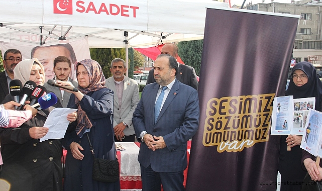 Basın açıklamasında konuşan Saadet Partisi Kadın Kolları İlçe Başkanı Fatma Sarıkaya, çocukların maruz kaldığı yoksulluk, eğitimde eşitsizlik, istismar, bağımlılık ve güvenlik sorunlarına dikkat çekerek, “Bugün burada çocuklarımızın sesi olmak, onların geleceğine sahip çıkmak için toplandık. Çünkü biliyoruz ki çocuğun güvende olmadığı bir ülkede, hiçbirimizin geleceği güvence altında değildir.” ifadelerini kullandı.