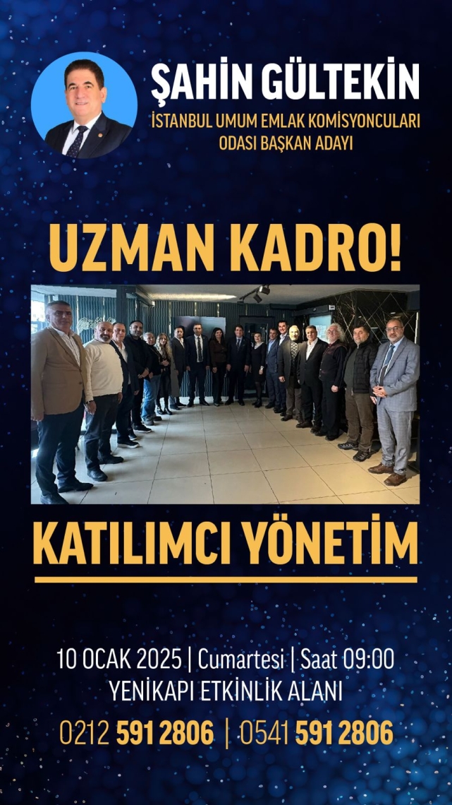 Şahin Gültekin, adaylık sürecini şu sözlerle özetliyor: “Biz bu mesleği masa başında değil, sahada öğrendik. Emlakçının derdini emlakçıdan başkası anlayamaz. Kiralık odalarla, göstermelik projelerle değil; bilgiyle, cesaretle ve güçlü bir duruşla geliyoruz. İstanbul emlak sektörünü hak ettiği saygınlığa kavuşturacağız.”