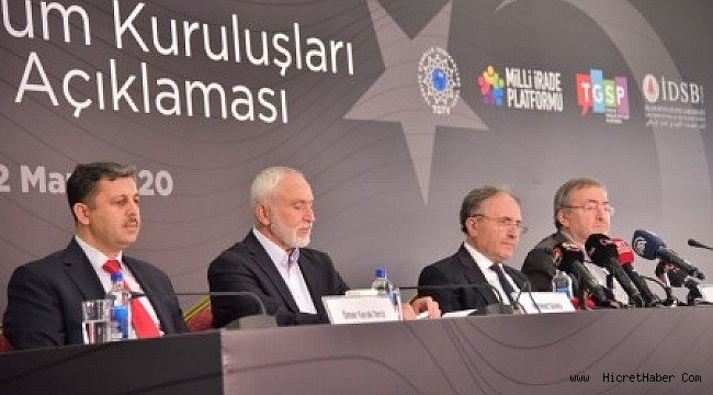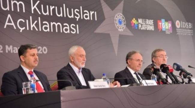 İnsan ve Medeniyet Hareketi, Milli İrade Platformu, Türkiye Gönüllü Teşekküller Vakfı gibi kuruluşların bulunduğu STK'lar bugün Haliç Kongre Merkezinde bir araya gelerek Türkiye'nin Suriye'de başlatmış olduğu Bahar Kalkanı Harekatına destek bildirisi okudular.