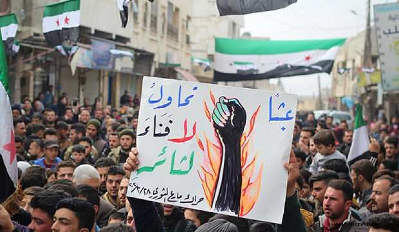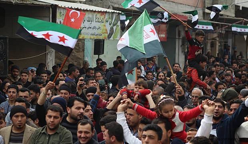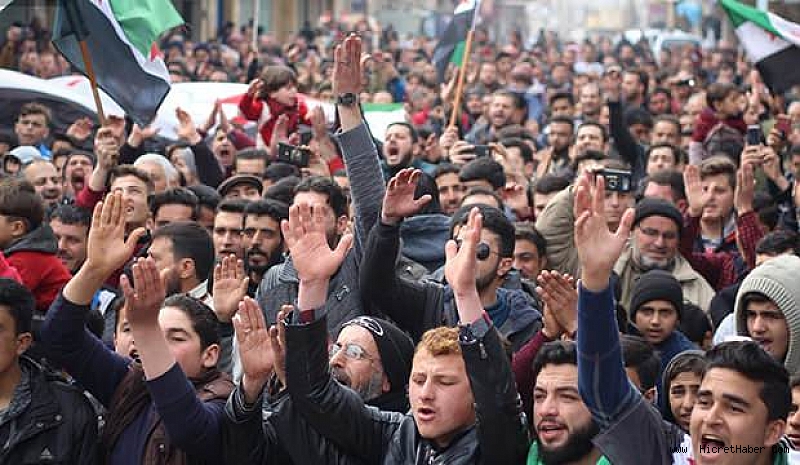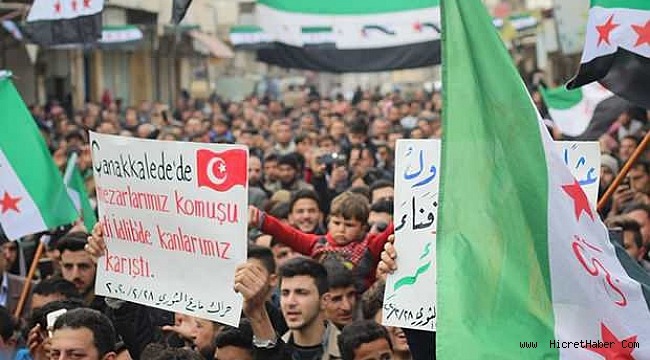 Esed rejiminin hava saldırısında 33 kahraman askerimizin şehit edilmesi sonrası Humus, Guta, Jarjanaz, Han Şeyhun, Mara ve Dara'da Suriye halkı Türkiye'ye destek için ellerinde ÖSO ve Türk bayrakları ile sokakları doldurdu.