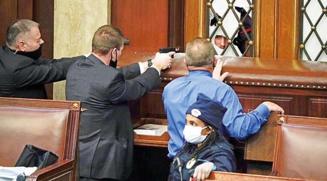 ABD Kongresi’nde Joe Biden’ın başkanlığının tescili için oylama devam ederken Trump taraftarları binayı bastı. Şiddetin tırmanması üzerine gaz maskesi dağıtılan Kongre üyeleri silahlı korumalar eşliğinde sığınaklara götürüldü. Yasama faaliyeti yarım ka...