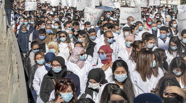Sağlık çalışanlarının üyesi olduğu üç sendikanın çağrısıyla başkent Tunus'ta toplanan binlerce doktor, hemşire ve tıp öğrencisi, ağırlaşan çalışma koşullarını ve genç bir doktorun görevi başında hayatını kaybetmesini protesto etti.