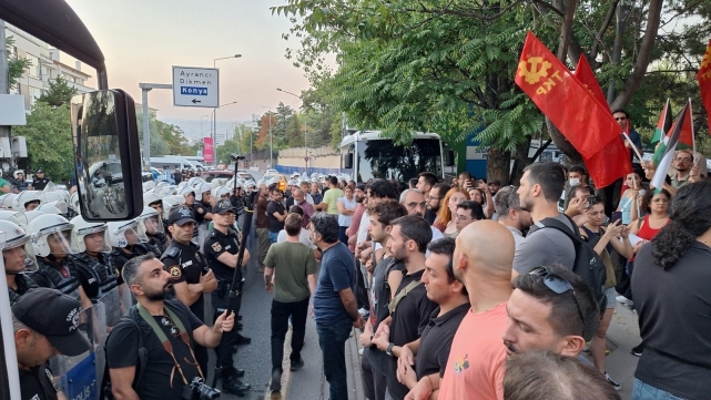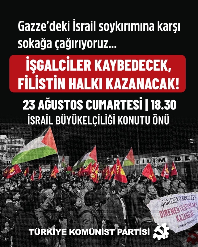 Türkiye Komünist Partisi (TKP) Ankara İl Örgütü, Atatürk Bulvarı üzerinde bir araya gelerek İsrail’in Filistin’e yönelik saldırılarını protesto etti. TKP’liler, İsrail Büyükelçiliği konutu önünde bir basın açıklaması yaptı.