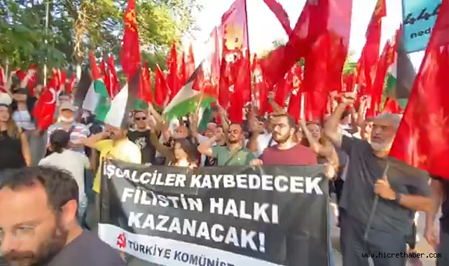 Basın açıklamasını yapan TKP Merkez Komite üyesi Ali Ufuk Arıkan, 7 Ekim’den bu yana İsrail’in 60 binden fazla Filistinliyi katlettiğini vurguladı. Arıkan, "Katledilenlerin yüzde 85’i sivildir. Kadınları, çocukları, sivilleri hedef alacak kadar alçaklaştılar. Ama biz buradayız, karşılarındayız" dedi.