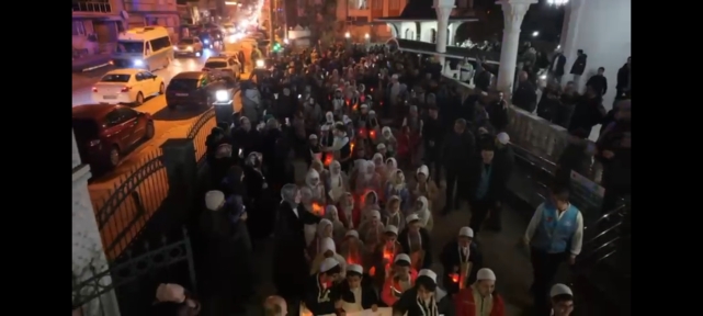 Kestanepazarı Hatay Eğitim Kampüsü’nde bir araya gelen minik öğrenciler; öğrenci velileri, Kur’an kursu hocaları ve çok sayıda davetlinin katılımıyla, tekbir ve salavatlar eşliğinde Akevler Makbule Durmuş Akkuş Camii’ne yürüyerek manevi bir atmosfer oluşturdu. Bu anlamlı yürüyüşe Kestanepazarı Öğrenci Yetiştirme Derneği Yönetim Kurulu Başkanı Cüneyd Dayhan, Yönetim Kurulu Üyesi Muhiddin Sami Dayhan, Millî Kültür ve Ahlâka Hizmet Vakfı Yönetim Kurulu Başkanı Halil Fatih Boyacı, Yönetim Kurulu Üyesi İbrahim Özpoyraz, dernek çalışanları ve çok sayıda vatandaş da eşlik etti.