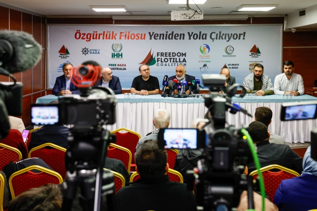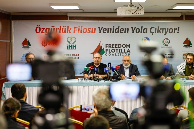 Türkiye’den İHH İnsani Yardım Vakfı ve Mavi Marmara Derneği’nin de paydaşı olduğu Uluslararası Özgürlük Filosu Koalisyonu’na bağlı gemiler, İsrail’in Gazze’deki ablukasını delmek ve insani yardım ulaştırmak amacıyla yola çıktı. Filoyla ilgili İHH Genel Merkezi’nde basın açıklaması düzenlendi. Basın açıklamasında konuşan İHH Genel Başkanı Av. Bülent Yıldırım, Gazze’de bir soykırım yaşandığını belirterek, “Bu soykırımı Amerika yapıyor. İsrail’i de tetikçi olarak kullanıyor. Dünyayı bir mafya yönetiyor. Bu mafyanın başkanı Amerika’da oturuyor. Amerika, dünya siyonizminin merkezi. Amerika halkı, Amerika’daki Siyonistlerden kurtularak özgürleşecek. Bütün dünya halkları, bu soykırıma tepki olsun diye yola çıktılar. Yeryüzünün her tarafında eylemler yapılıyor. Önümüzdeki birkaç gün içerisinde Roma’da büyük bir yürüyüş yapılacak, oraya da katılacağız. Buradan ilan ediyorum, 5 Ekim Pazar günü Ayasofya’dan Eminönü’ne büyük bir hareket gerçekleştireceğiz. Bu yürüyüşler Ankara’da da olacak, Türkiye’nin bütün yerlerinde de olacak. Nöbetler tutacağız meydanlarda, bütün Türkiye’yi harekete geçireceğiz” dedi.