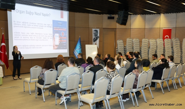 Belediye Çok Amaçlı Salonu’ndaa gerçekleştirilen eğitimde; Organ Nakli Koordinatörü Uzman Hemşire Gamze Ataman Yıldız, Türkiye'de organ nakli sayısının düşük olduğuna vurgu yaparak, ‘Canlıdan bağış sayısında dünyada ikinciyiz ama kadavradan nakile gelince hasta yakınları, kaybettikleri yakınlarının organlarını bağışlamak istemiyor. Habuki bir kişinin bağışığıyla birçok kişinin hayatını kurtarabiliriz. Bu sebeple hep diyoruz ki toprak olmasın, can olsun’’ diye konuştu.