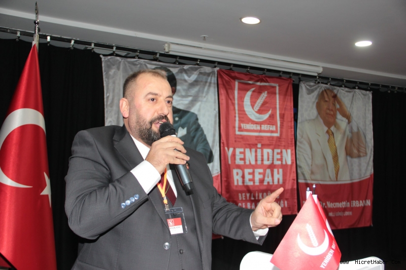 Kurmak için canla başla çalışmaya tekrar başladık Ben denize görevi genel başkanımız tevdi ettikten sonra hemen ayni günde ilçe kuruluşu için heyecanla çalışmalara başladık çok kısa bir süre içinde muazzam bir teveccüh ile karşılaştık. Hemen ilçe ekibimizi oluşturup ilçemizin kuruluşunu gerçekleştirdik. Il toplantımızda birbirimize şu sözü verdik. Gelişen olaylar karşısında Siyonizm’i yenmemiz için birer Erbakan olup Erbakan'ca düşünüp ve Erbakan'ca hareket edeceğiz dedik. Bir takım cevreler bazen bize diyorlar ki neden siyaset yapıyorsunuz bizde diyoruz ki siyaset düzeni kurmaktır, düzeni sağlamaktır, bakınız peygamberler tarihine bütün peygamberler yeni bir düzen kurmak için geldiler. Hakkı tahsis edip adil bir düzen kurdular. Şimdi biz bunları yaparken muhakkak zorluklar ile karışılacağız. Ayni grip mikrobunun vücuda saldırdığı gibi biz ede saldıracaklardır. Biz yılmayacaktı nasıl mikroba karşı 10 doz ilaç verip tedavi etmeye çalışıyorlar ve mikrop bir sene sonra bağışıklık kazanıp tekrar kabuğunu güçlendirip tekrar saldırıya geçiyorsa bize de aynisi ile muamele edecekler. Allah C.c bizim Rabbimiz olduğu gibi mikrobunda rabbidir. Kim hakkı ile çalışıyorsa mükâfatını ona göre veriyor. S.A.V nasıl Bilali Habeşî’yi Kızgın çöllerden kurtarıp kabenin tepesine çıkartıp ezan okutup aziz etti Bizim peygamberimiz ise bizde bu uğurda inşallah sokaklarda orada burada heba olan gençliğimizi oradan çekeceğiz topluma kazandırıp vatana millete bayrağa ezana hizmetkâr yapacağız. Bizim liderimizin derdi ne ise bizimde derdimiz aynıdır. Ayağımızın altından kaymakta olan toprağa fidan dikeceğiz Diktiğimiz birey olacak Biiznillah fidan ağaç olup dallanacak, meyve verecek ve ümmete millete vatana bayrağa sadık bir Bizler yeni Hz. Muhazlar Yeni Muhammed Fatihler Yeni Başkomutanlar, Yeni Erbakanlar, Yeni Muhsinler Yeni mücahitler yetiştirmeye ant içtik. Biz bunları yaparken nezaket ve tevazu ile yapacağız. Rabbim çıktığımız bu kutlu yolda, hak yolunda ayaklarımızı sabit kılsın, üstat şairin dediği gibi tohumu saç toprağa bitmezse toprak utansın, misali çalışacağız. Gerisini Allah C.c bırakacağız. Kongremize teşriflerinizden dolayı sizlere tekrar teşekkür ediyorum sevgi, saygi ve muhabbetle selamlıyorum''dedi.
