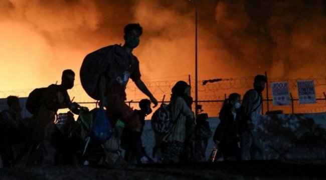 Yunanistan ın en büyük mülteci kampı olan Moria da gece saatlerinde yangın çıktı… Geçen hafta içerisinde ilk corona virüsü vakasının tespit edildiği bundan günler sonra önceki gün 10 kişide daha corona virüsü tespit edilen Moria mülteci kampında dün gece yangın başladı.Ülkenin en büyük üçüncü adası olan Midilli de bulunan mülteci kampında gece saatlerinde yangın çıktı. Bilinmeyen bir sebeple başlayan yangın büyük korku yaratırken binlerce insan alevlerden kaçmak zorunda kaldı.