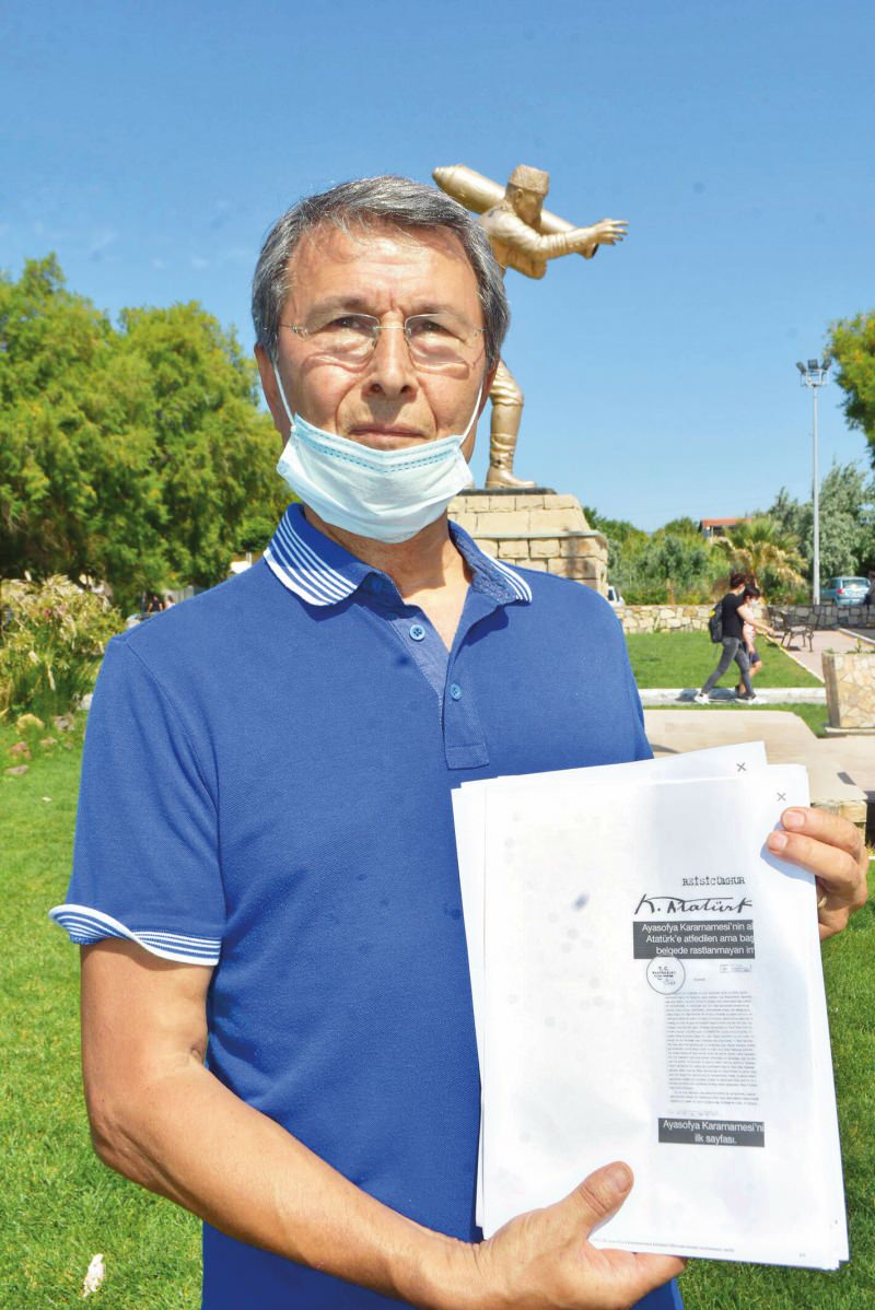 Soyadı Kanunu, 27 Kasım 1934’te Resmi Gazete’de yayınlandı. Mustafa Kemal de Atatürk soyadını aldı. Yani o Mustafa Kemal o tarihten önce Atatürk soyadını kullanamaz. Bahse konu kararnamede ‘Atatürk’ soyadı yer alıyor. Hem de Atatürk’ün resmi imzalarda kullanmadığı büyük ‘a’ harfi ile. Bu imza ile ilgili benim kanaatim, Ayasofya ile heyetin raporu bakanlar kurulunda imzaya açıldı. Bakanlar imzaladı Atatürk’ün önüne getirildi. Ancak Atatürk imzalamadı bu yüzden de Resmi Gazete’de yayımlanamadı. Atatürk’ün ölümünden sonra da bir el onun imza denemelerinde kullandığı imzayı attı.